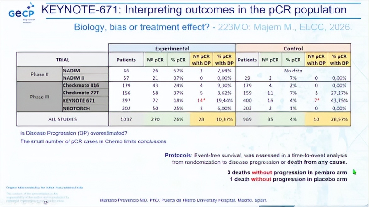 Jonathan Spicer教授指出,尽管pCR患者整体预后更优,但仍有部分pCR患者出现疾病进展甚至死亡;相反,非pCR患者中,围术期免疫治疗的相对获益依然显著。他强调,当前“非pCR”群体被简单归为一类,掩盖了其内部巨大的生物学异质性。未来亟需通过更为精细的生物标志物实现个体化治疗决策,避免“因不确定性而过度治疗”。