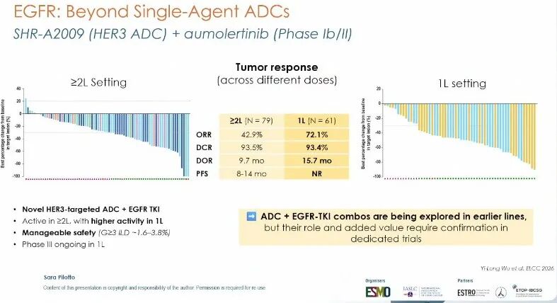 Sara Pilotto教授指出,SHR-A2009联合奥希替尼在初治患者中展现出令人鼓舞的疗效,其III期确证性研究已启动,有望为EGFR突变NSCLC一线治疗提供新的“无化疗”联合选择[13]。