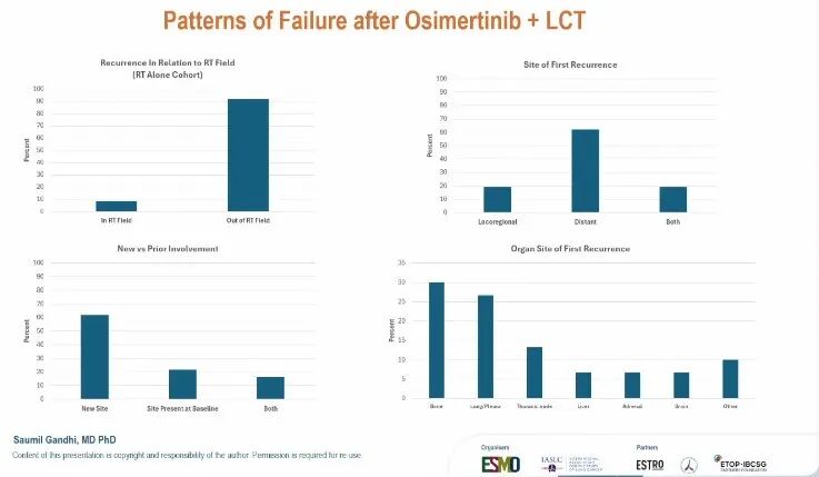 本次公布的亚组分析纳入了119例患者,其中56例接受奥希替尼联合局部巩固治疗。放疗方面,最常用的分割方案包括52.5 Gy/15次、50 Gy/4次、60 Gy/15次和45 Gy/15次,76%的患者在放疗期间继续使用奥希替尼。