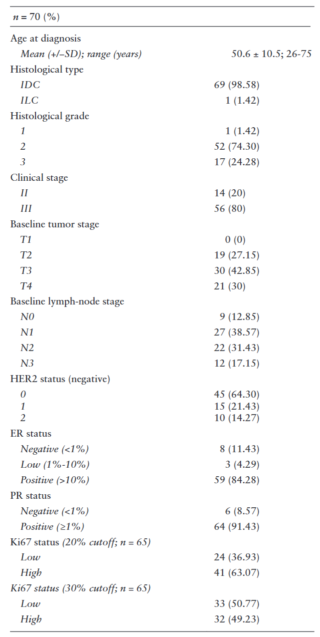 表1.HR+/HER2-乳腺癌患者新辅助化疗前基线临床病理特征
