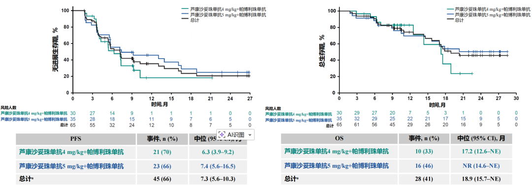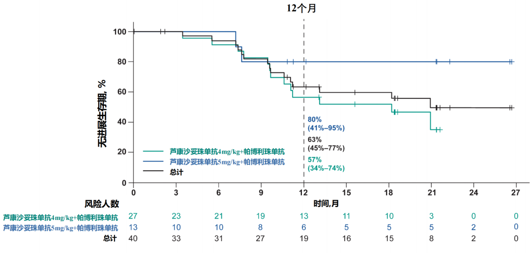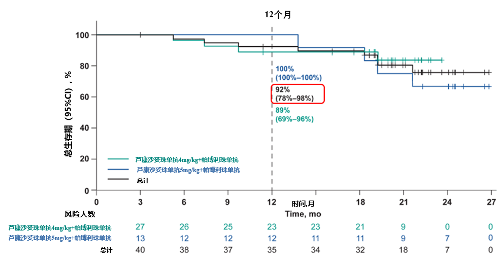 吴小华教授:本次汇报了MK-2870-002研究两个队列的最新结果。其中一个是针对BRCA野生型二线治疗的铂敏感复发性卵巢癌患者,使用芦康沙妥珠单抗联合帕博利珠单抗作为维持治疗。该队列共入组40例患者(包括4mg/kg q2w 27例,5mg/kg q2w 13例),这些患者有70%既往接受过贝伐珠单抗治疗,58%接受过PARP抑制剂治疗。中位随访22.2个月时,总人群的中位无进展生存期(PFS)为20.9个月,中位总生存期(OS)尚未达到,1年OS率高达92%。