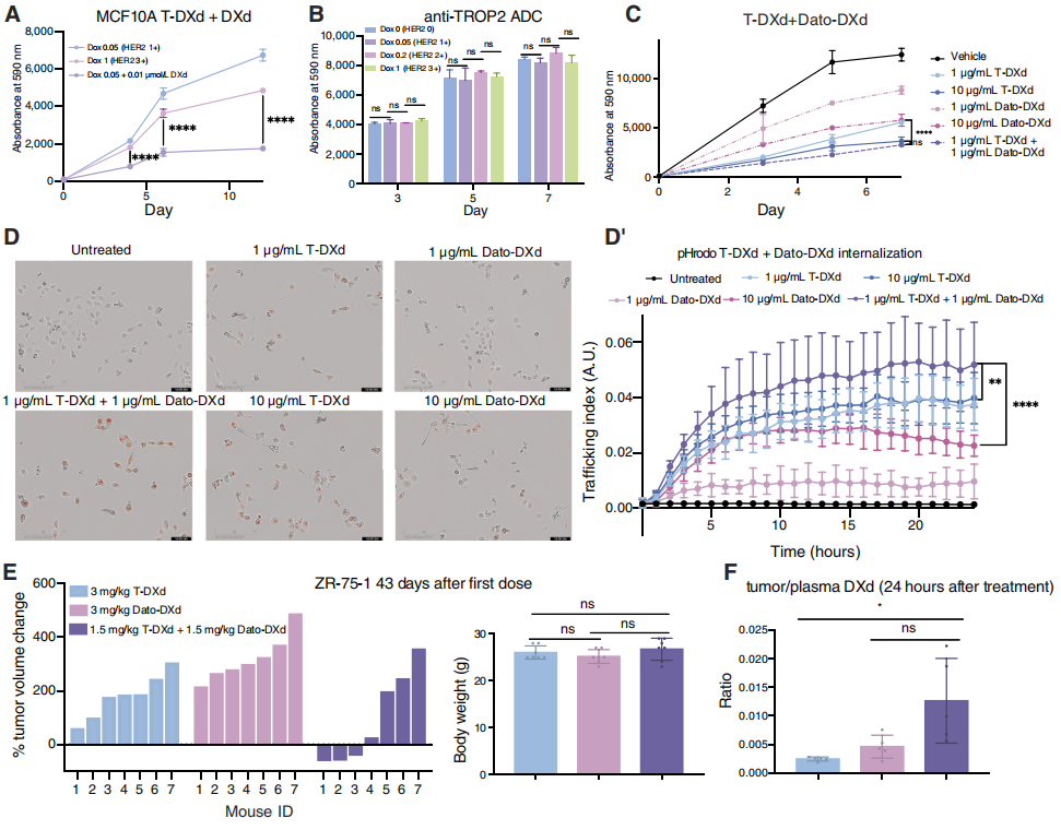 针对因靶点丧失导致的新型ADC药物内化不足,研究提出并验证了双ADC联合治疗的策略。