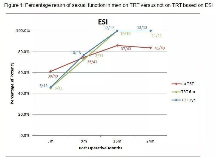 图2. TRT治疗 vs 无 TRT治疗患者的性功能恢复情况