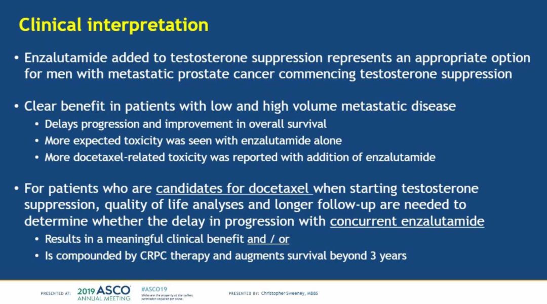 2019ASCO︱ENZAMET试验:恩杂鲁胺显著改善mHSPC患者总生存(附幻灯)