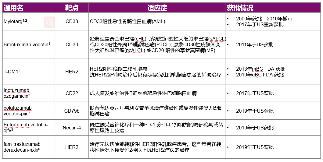 图2:截至至2020年2月,全球仅7款ADC获批上市