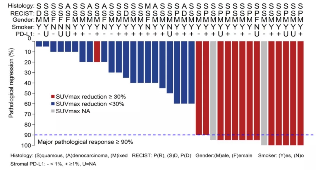 这些研究得出结论:信迪利单抗新辅助治疗I-IIIa期NSCLC患者的主要病理学缓解率为40.5%且可以耐受。治疗后SUV值的下降可能可以预测病理学缓解率。
