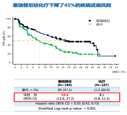 总结来说,塞瑞替尼一线治疗晚期ALK阳性NSCLC疗效好、剂量已优化,能令患者得到生存获益。在临床实践中,塞瑞替尼450mg一线应用还可积累更多的数据支持。