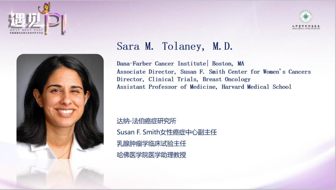 Sara M.Tolaney教授:这是一个很有意思的问题,目前我们没有这方面的数据,我们可能更多的需要考虑三靶联合的毒性问题,目前有一些临床试验正在开展,但目前还没有这样使用的证据。