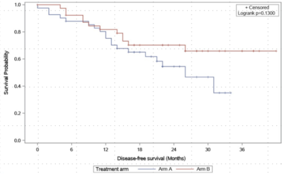 4、在Ⅱ期研究入组样本量方面,由于JACOB研究[3]阴性结果提前关闭研究,实际入组仅81例,要小于预期100例;样本量的减少,也会影响将来DFS和OS的差异;因此未来我们可能不仅需要看两组之间是否有统计学P值的差异,更要看这种差异是否具有临床的实际意义。