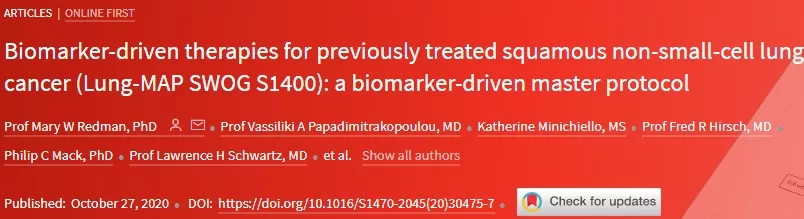 Lung MAP(S1400)初步成功——生物标志物驱动的鳞状非小细胞肺癌治疗