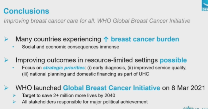 编者按:圣加伦国际乳腺癌大会(St.Gallen Breast Cancer Conference)是全球最具影响力的讨论乳腺癌诊治的国际性会议,会议旨在就乳腺癌治疗过程中出现的争议性问题达成共识。在本届“On-Demand session”环节上,来自世界卫生组织(WHO)的André Ilbawi博士就当前乳腺癌这一世界性疾病所面临的社会负担进行了阐述。