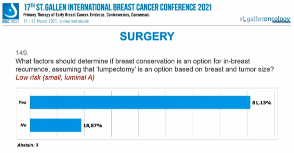 假如“肿块切除”是基于乳房和肿瘤大小的一种选择,哪些因素可以决定乳房内复发患者是否可以选择保乳手术?