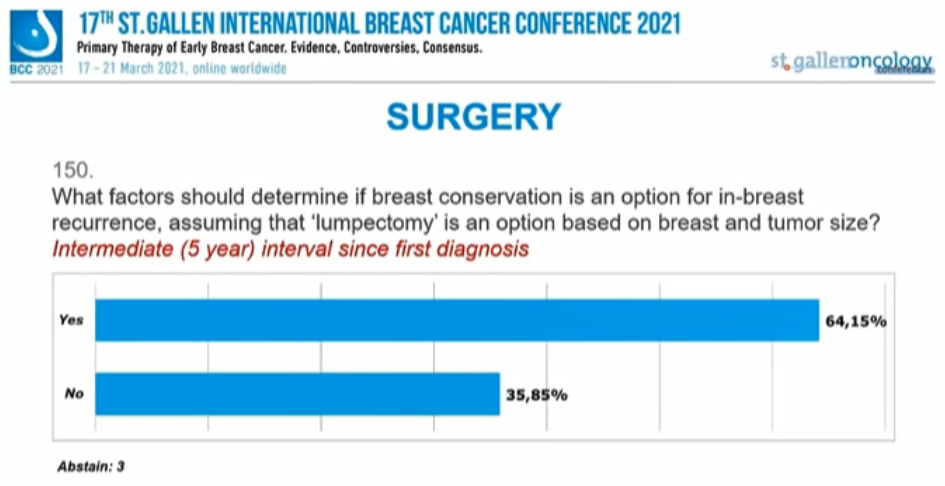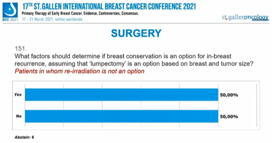 对于接受再程放疗的患者,一半的专家认为可以保乳。