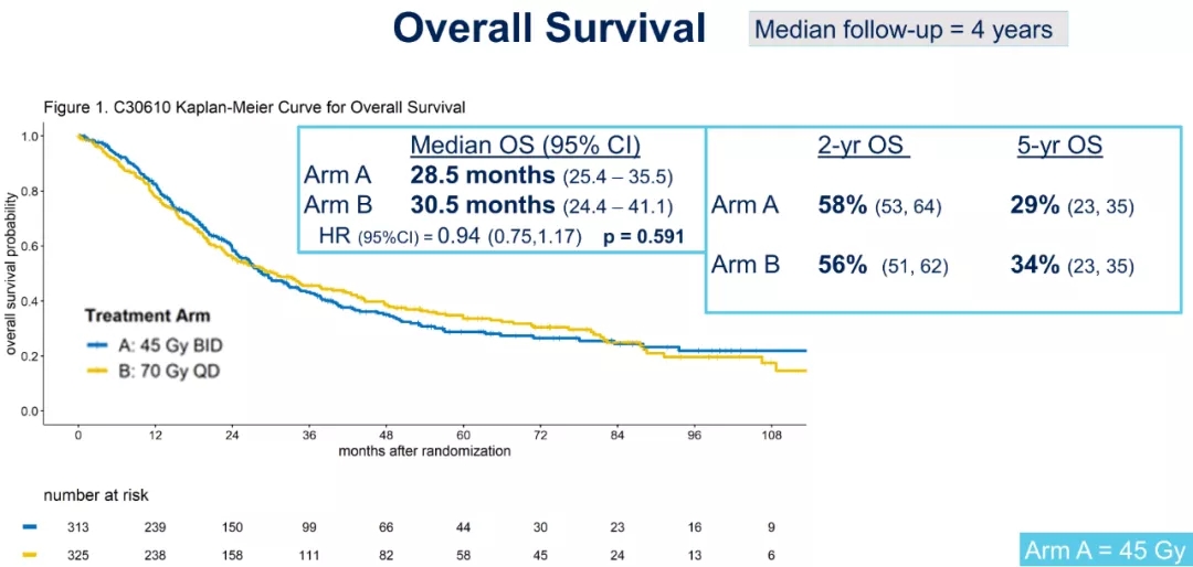 总之,这项研究QD组的有利结局为高剂量每日一次胸部放疗作为局限期小细胞肺癌的可选方案提供了迄今为止最有力的证据;关于患者生活质量、治疗失败模式以及包括胸部放疗时机、技术和化疗方案等在内的不同变量影响的数据结果待发布。