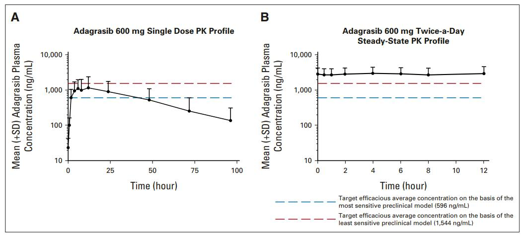 Adagrasib前期的药代动力学数据