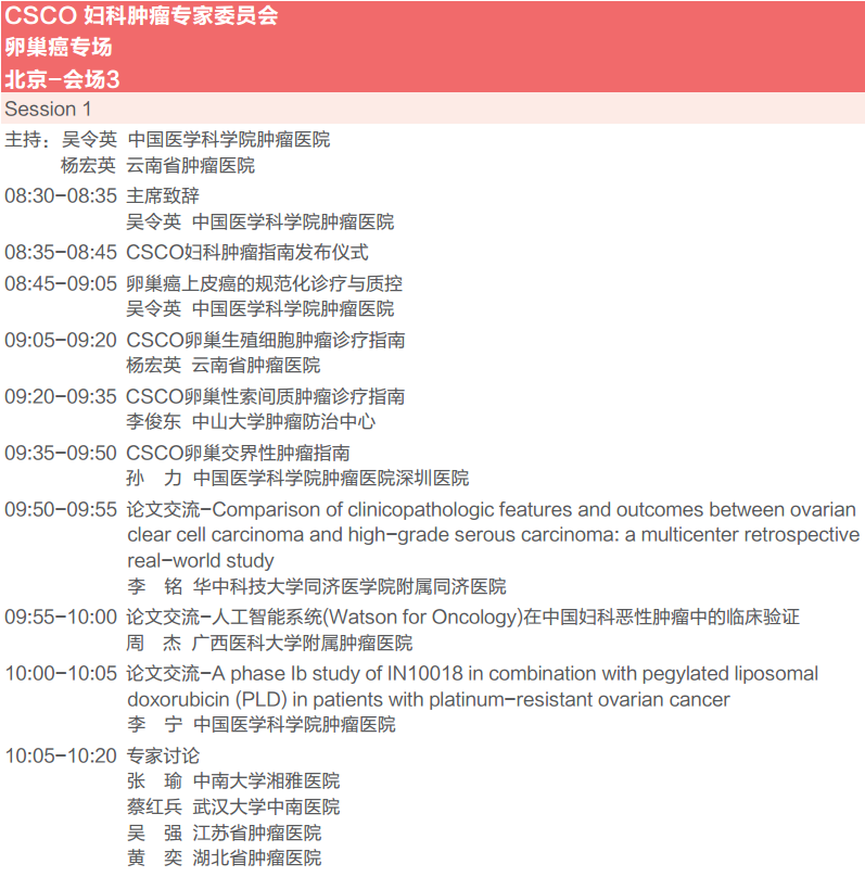 CSCO妇科肿瘤专家委员会卵巢癌专场