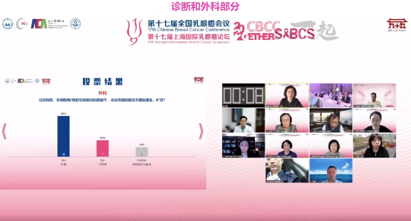 徐莹莹教授:本次3C论坛,我主要负责筛查-病理-外科部分的引导。这一环节的讨论非常热烈,尤其几个关于外科的问题。这些题目基于局部治疗降阶的大趋势而提出,由于不同医院诊疗流程、操作方式的差异较大,所以专家们针对不同的操作场景给予了宝贵的意见和建议。