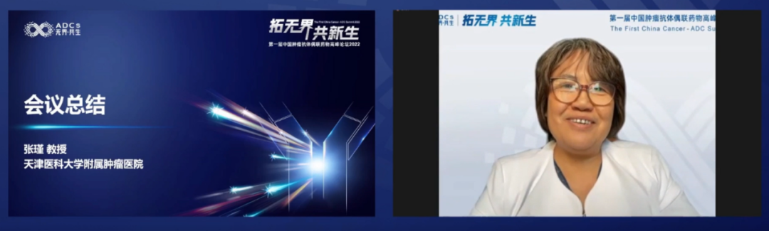 会议最后,张瑾教授进行了会议总结。她表示,在本次会议的专家讲课中,我们重新学习了ADC药物的组成、作用机制、发展历程、更新迭代、最新的研究进展及不良反应管理,相信能给临床医生带来更多获益,同时也能为乳腺癌患者的治疗带来更多选择。通过各位专家的讨论,我们对HER2低表达乳腺癌患者的治疗理念及诊疗思路也更加清晰,再次感谢各位专家的参与!