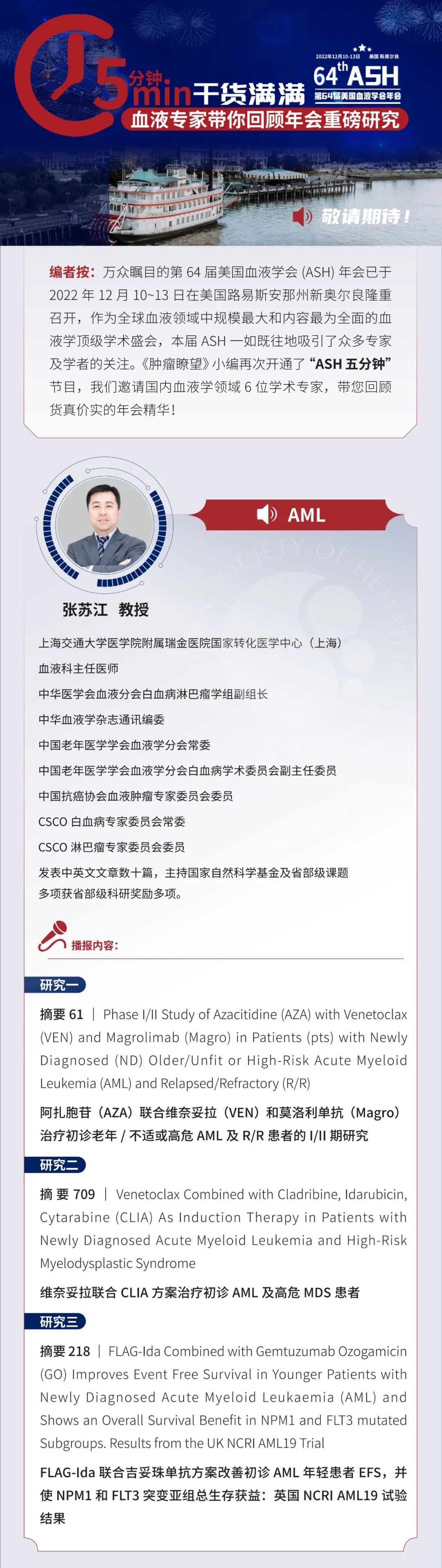 万众瞩目的第64届美国血液学会(ASH)年会已于2022年12月10~13日在美国路易斯安那州新奥尔良隆重召开,作为全球血液领域中规模最大和内容最为全面的血液学顶级学术盛会,本届ASH一如既往地吸引了众多专家及学者的关注。《肿瘤晓望》小编再次开通了“ASH五分钟节目,我们邀请国内血液学领域6位学术专家,带您回顾货真价实的年会精华!