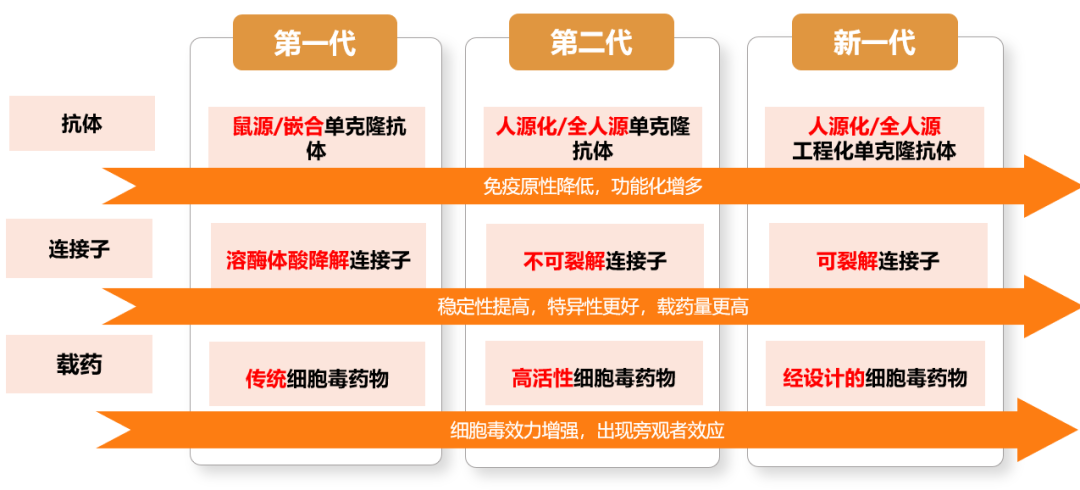 随着抗体制备技术的不断成熟、高效能细胞毒药物的设计开发。新一代ADC药物从各方面各细节都有了结构优化和升级。