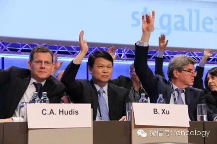 当地时间2015年3月21日上午,圣加仑乳腺癌共识专家组投票现场座无虚席,他们与端坐在主席台上的48位专家组成员共同见证新版共识的诞生。