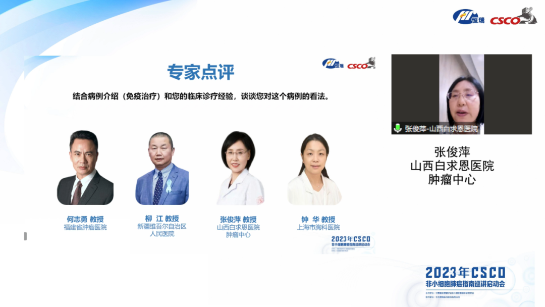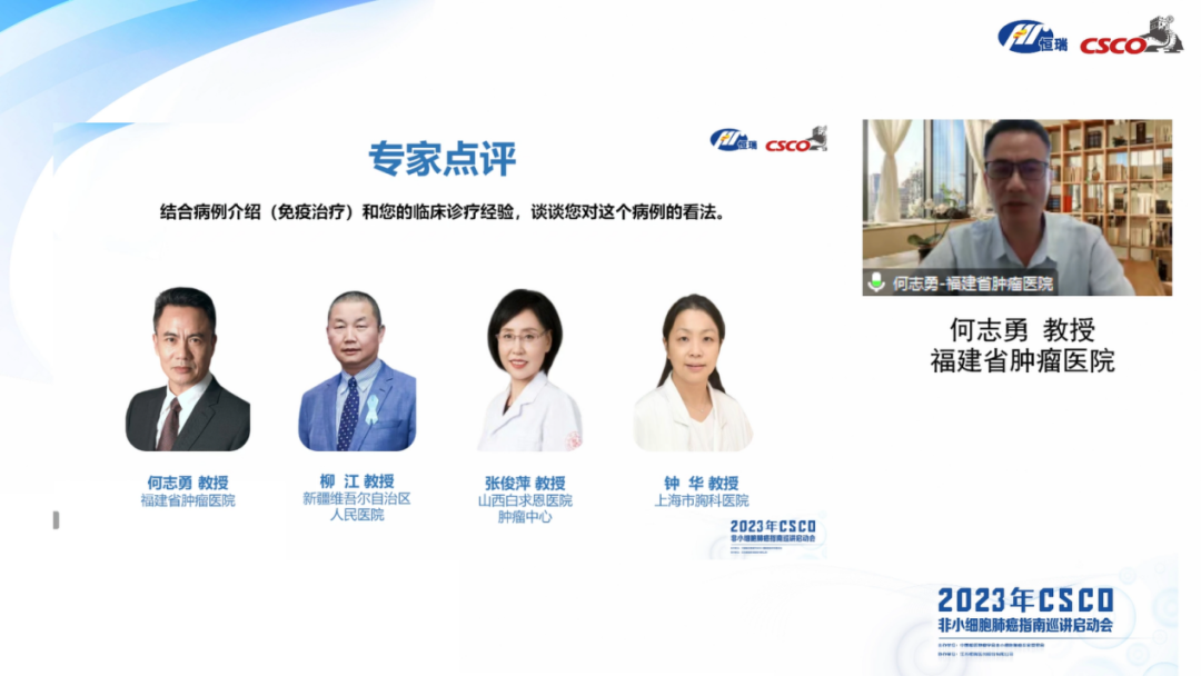点评环节中,福建省肿瘤医院何志勇教授、新疆人民医院柳江教授、山西白求恩医院张俊萍教授和上海市胸科医院钟华教授发表了观点。专家谈到,免疫治疗不仅改写了指南,更是切切实实改变了很多患者的生命轨迹;此例患者通过卡瑞利珠单抗联合化疗一线及维持治疗获得了超长PFS,已经步入慢病化管理;关于免疫维持治疗的时长和给药间隔时间仍然需要临床实践数据支持,目前主要根据药物可及性、患者耐受性等个体化决策。