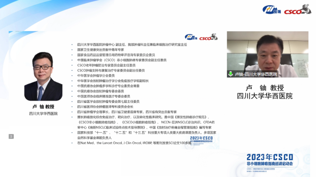 2023年5月24日,由中国临床肿瘤学会(CSCO)非小细胞肺癌专家委员会主办、江苏恒瑞医药协办的“2023年CSCO非小细胞肺癌指南巡讲启动会”成功举办,开启了2023年中国非小细胞肺癌(NSCLC)领域规范化诊疗的新征程。弦歌不辍,随着业内专家的巡讲之声,《2023CSCO非小细胞肺癌诊疗指南》(以下简称2023CSCO指南)的一系列重要更新及其背后的循证医学依据将深入到不同层级的医疗机构,帮助广大患者获得规范化、同质化的诊疗服务和最大化的生存获益。