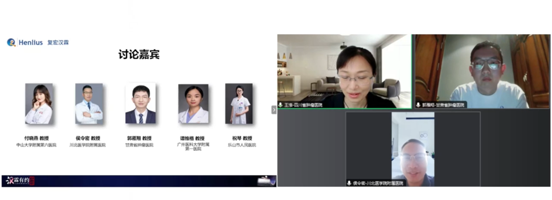 杨文倩教授讲课结束后,在王浩教授的主持下,中山大学附属第六医院付晓燕教授、川北医学院附属医院侯令密教授、甘肃省肿瘤医院郭雁翔教授、广州医科大学附属第一医院谭维格教授、乐山市人民医院祝琴教授就携带BRCA突变的乳腺癌患者治疗方案进行了讨论。