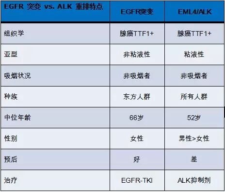 表1. EGFR 突变 vs. ALK 重排