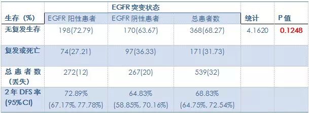 根据ICAN 研究次要终点分析:与EGFR突变状态相关的2年DFS如表2所示:
