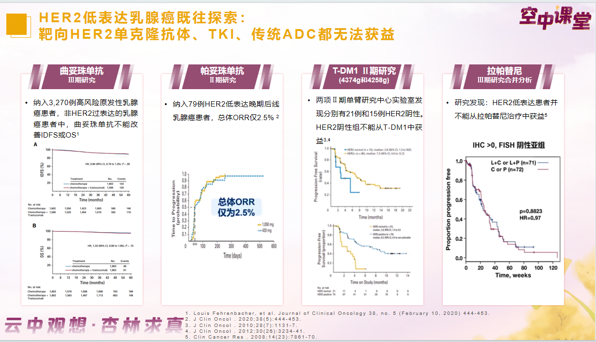 HR+/HER2-乳腺癌患者中HER2低表达约占65%,存在的治疗需求未被满足。既往,靶向HER2的单克隆抗体、TKI和传统ADC药物都对此类乳腺癌进行了治疗探索,但治疗疗效有限。