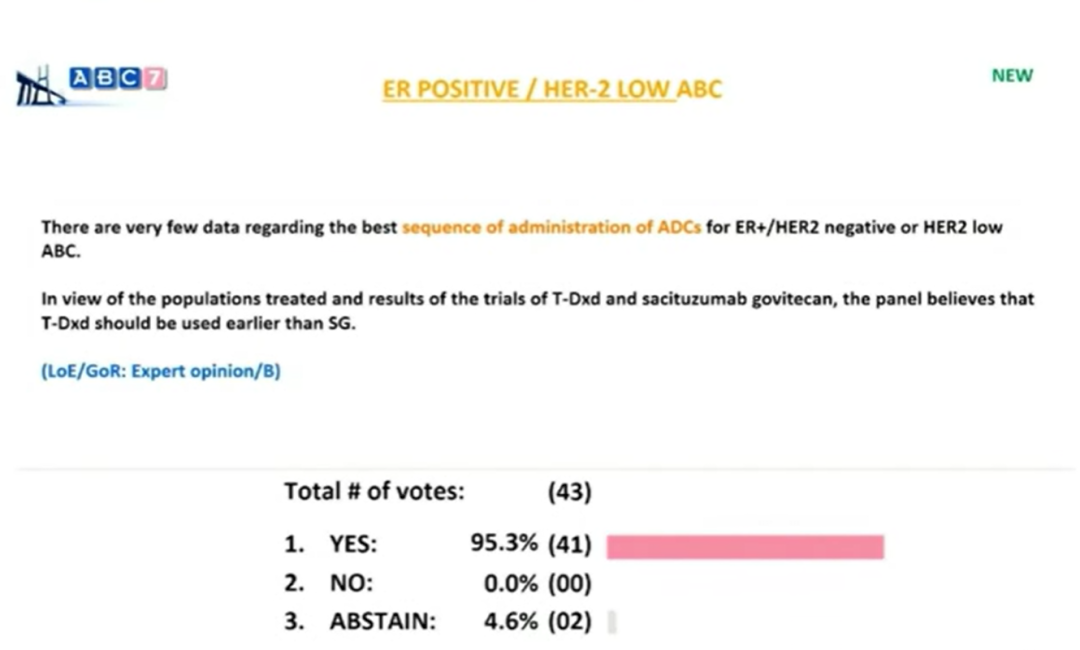 关于ER+/HER2-或HER2低表达ABC患者ADC药物使用的最佳给药顺序的数据很少。