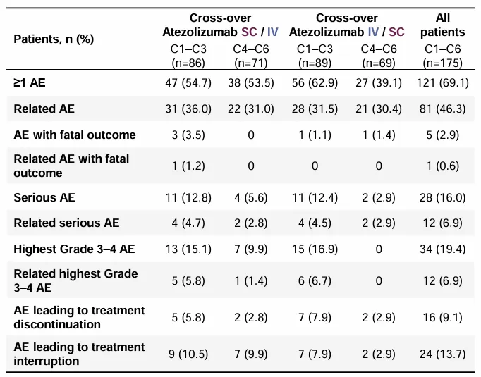 总体安全性与已知的阿替利珠单抗一致。未发现与更换方案相关的安全问题。