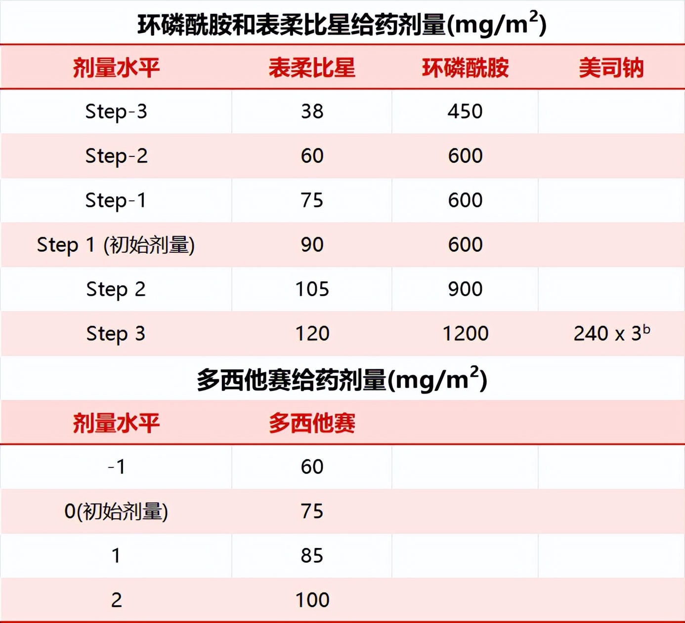 表2.定制剂量密集型方案试验组患者根据白细胞和血小板数值治疗方案调整标准