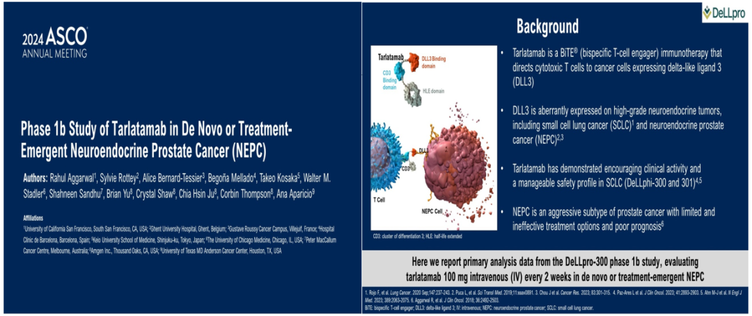 此外,塔拉妥单抗是一种双特异性T细胞接合剂的免疫疗法,一项研究分析了塔拉妥单抗治疗神经内分泌前列腺癌(NEPC)的初步数据。该研究结果发现,对于这种预后差且无标准治疗方案的侵袭性前列腺癌类型,塔拉妥单抗安全性可控,并且表达DLL3的NEPC患者的抗肿瘤活性良好。